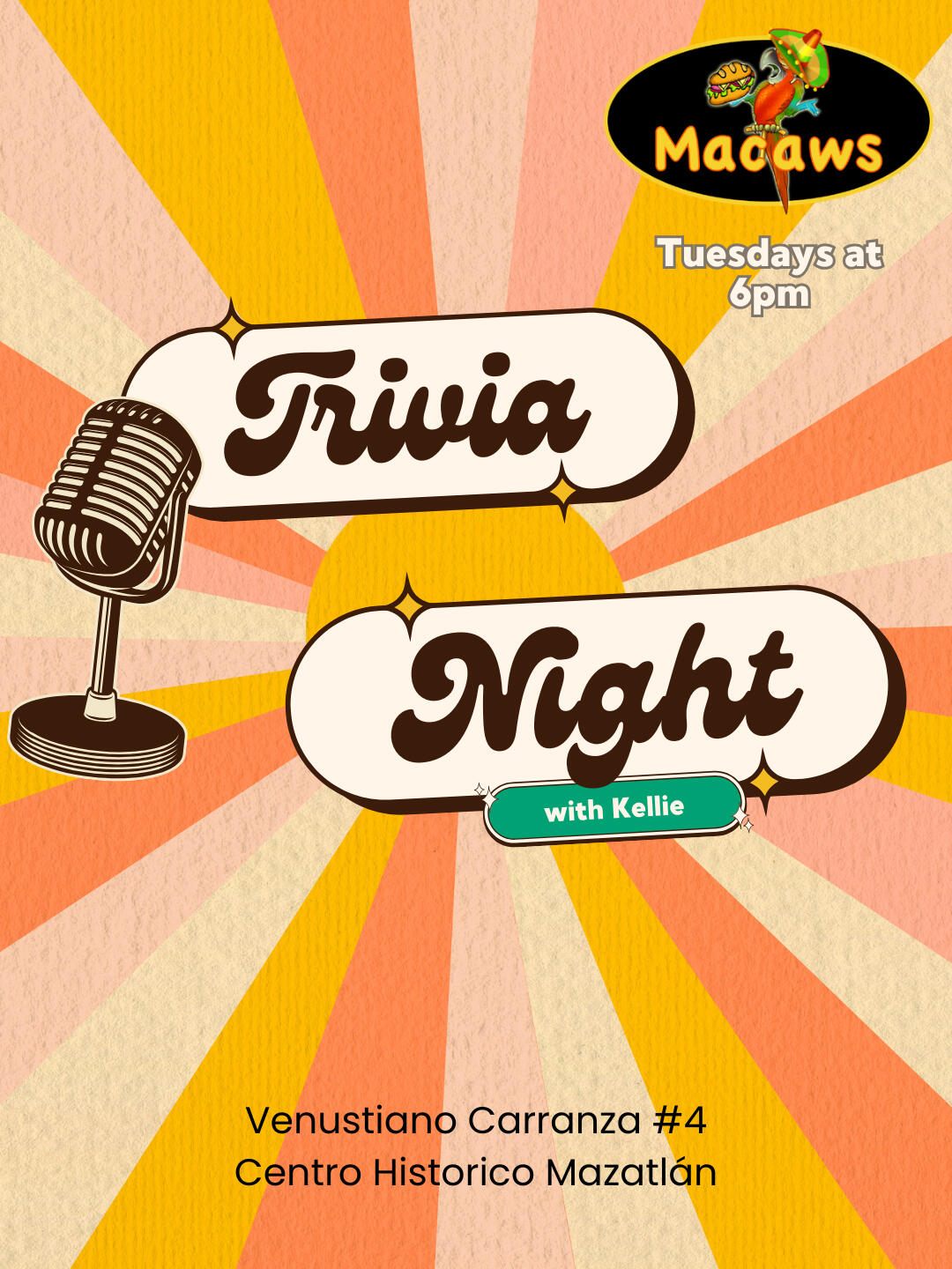 Weekly starting November 4th join the fun and compete for cash prizes and bragging rights at Macaw's! Reservations encouraged and walk-ins welcome as space permits. Call Macaw's to reserve: 6691952151